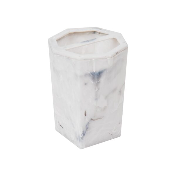 Maison Sucasa Tumbler for Bathroom, Countertop, Bathroom Accessory, Makeup Brush Holder, Pen Cup, Marble Design, Resin, White
